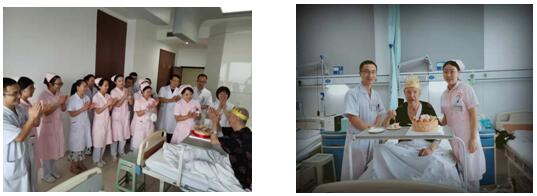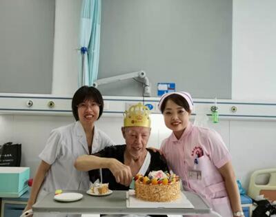 2019年8月21上午,忙碌的我们和平时一样,有条不紊的进行着工作,但是我们心照不宣,准备给病房的一位老爷爷举行一个温馨的生日惊喜。在老人办理住院的时候,细心的主管医生李飞龙就发现老人的生日就在本月的21号,老人因为身体原因,每年要住几次医院,他是我们眼中的“和蔼慈祥老爷爷”,同时我们也在老人心中胜似亲人。在郝锋利主任及刘娜护士长的安排下,所有在班的医护人员为老人送来了生日惊喜。当主任和护士长端着蛋糕,所有医护人员为老人齐唱起生日快乐歌,老人开心的像个孩子一样,拍手表示感谢,并在大家的祝福声中许下生日愿望。在那一刻,我们感受到了老人的激动,也体会到我们内心的那份感动,趁着这个美好的氛围,在场的医护人员纷纷和老人合影留念。留住的是老人开心的笑脸,科室的祥和,医患的和谐。引用一句话“生活需要仪式感,普通平淡的日子因为被赋予了爱,感恩,纪念,才能显得弥足珍贵”。同样,我们的工作亦是如此,正因为每个普通的生命,需要我们去尽自己所能,去全力救助,所以每个生命都如此珍贵,如此的有意义。