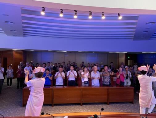 神经内科七病区方丹和惠晓楠两名护士,对参会的所有人员进行了“健脑操”的讲解和示范。每一步的分解动作耐心指导,让患者和家属在最短的时间内掌握了整套操的要领,全场人员跟着节拍进行了练习,气氛活跃,效果显著。