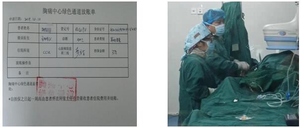 将病人紧急送往导管室。因患者无陪人、无费用,立即启动绿色通道,和患者及远在呼和浩特的家属电话录音谈话、说明病情,签署知情同意书……