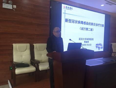 随后,呼吸内科贾建厚主任医师对《新型冠状病毒感染的肺炎诊疗方案(试行第二版)》进行了解读,详细讲解了新型冠状病毒的特点、类型、病例特点、鉴别诊断、诊疗方案。之后,感控办杨竹杏主任为大家详细讲解了新型冠状病毒感染的医院感控要求,强调了医护人员防控的注意事项。