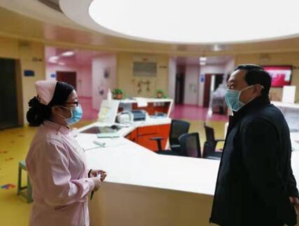2020年1月26日上午11点,李卫军董事长带领职能科室负责人进行了行政查房并亲切慰问临床一线医护人员。查房过程中,他强调医护人员必须加强自我防护意识,佩戴口罩,勤洗手,定时开窗通风,增强自身免疫力,取消各类聚餐聚会,不在人员密集场所逗留。各职能科室负责人对临床科室防护工作进行了检查与督导。