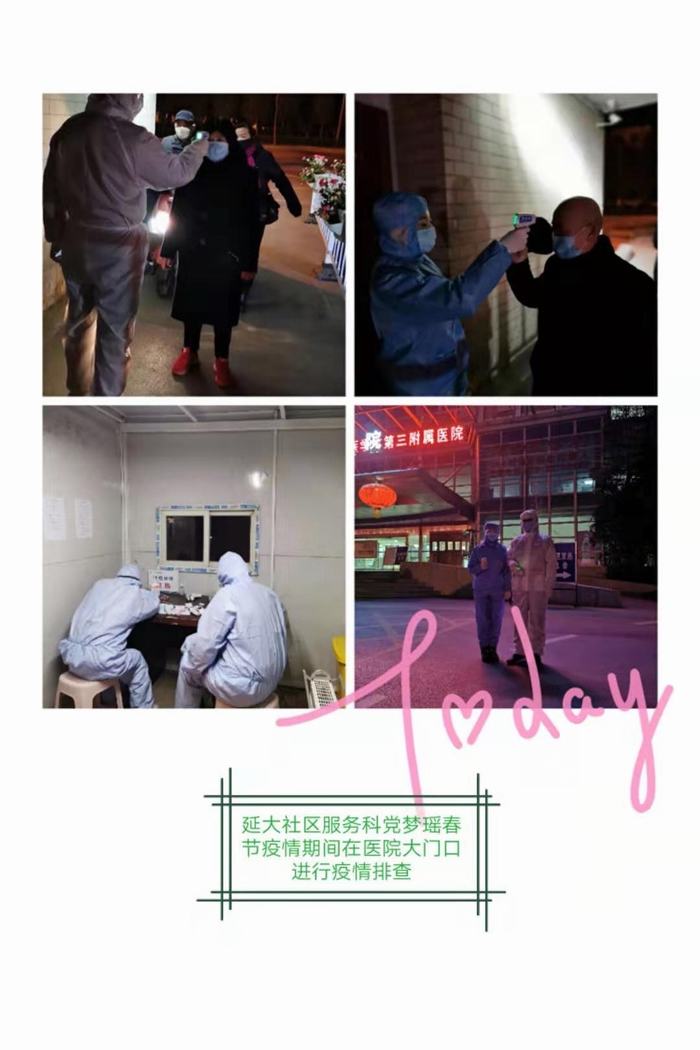 我中心党梦瑶坚守一线,为进出医院的人员测量体温。