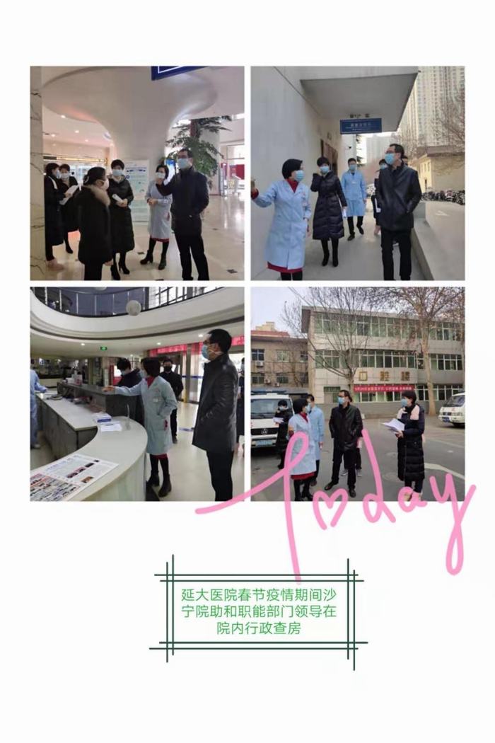 延大医院春节疫情期间沙宁院助和职能部门领导在院内行政查房。
