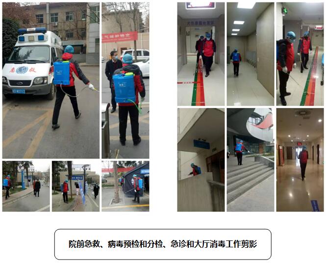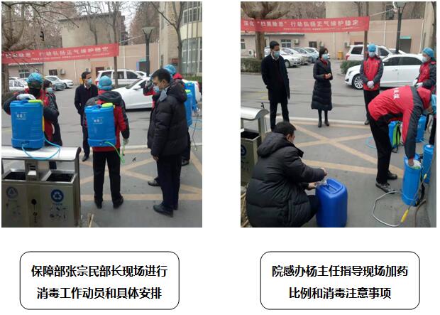 2020年2月1日下午,我们保障部紧急调配6部消毒喷雾剂,组建医院消毒应急队,邀请院里感染办公室杨主任指导,按比例加药(过氧酸钾);张部长动员保障部全体员工行动起来,抗击疫情,并亲自督导指挥消毒工作,本次消毒主要对全院所有走廊、楼梯间、大厅、室外公共区域和医院家属院等区域集中消毒,抵抗病毒浸入,消除病毒滋生环境,尤其对院内新型冠状病毒预检、分检处、发热门诊、院前急救等重点部位,每天消毒不少于2次。从即日开始每天坚持全院消毒,根据疫情发展随时调整消毒方案。
