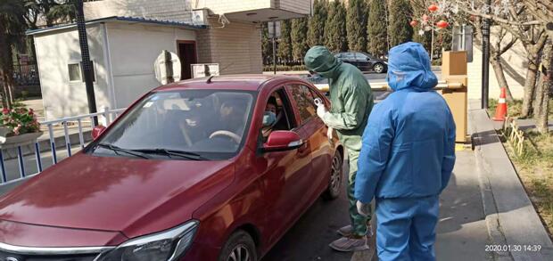 除夕之夜,疫情升级,新型冠状病毒感染的肺炎疫情防控形势愈发严峻。在疫情传播高峰即将到来之时,医院职能、后勤部门人员主动放弃春节假期,自发回院加入抗击疫情、维护医院稳定的各项工作。1月30日起,职能后勤工作人员早上八点正式上岗,每四小时一班,保证院前24小时随时在岗,无缝衔接,参与院前体温监测执勤,疏导入院人员和车辆。