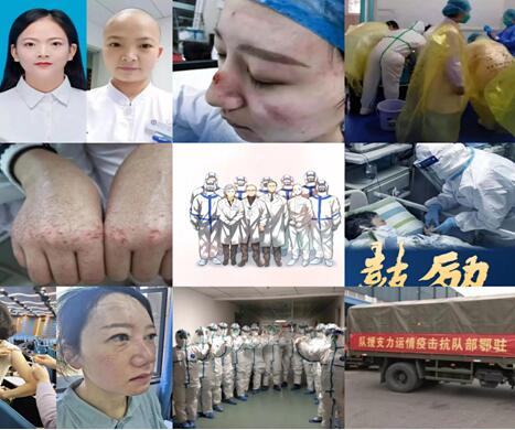 这张被红色覆盖的地图牵动着每个人的心、这场在祥和快乐的节日里突发的疫情,涌动着全世界中国人的赤子心,让世界瞩目、赞叹着中国人的团结,让我们每个人感动着、前行着、并为之奉献着。有一群人他们不惧凶险,不计报酬,不为光环,毅然奔赴疫区,与疫情殊死斗争,只因这是一份责任与担当。摘下防护用品的脸庞产生了压力性损伤、脱掉手套的双手皲裂发白、十几个小时不吃不喝、汗水浸透防护服内的衣服、与家人视频中孩子那一声声“妈妈你回来”“爸爸我想你”……所有的画面让我们感动、泪目。在防护物资稀缺的一线,在恶疾肆虐的一线,他们用生命守护生命。他们是妻子,丈夫、他们是女儿,儿子、他们是母亲,父亲。但此时,他们是无所畏惧、勇往直前、向苏格拉底宣誓过将“终生奉行人道主义”“救死扶伤”的白衣天使。