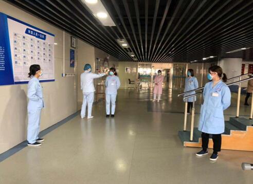 (三)每天晨交班,改为康复大厅宽阔区域短交班,人与人间隔1m以上。接诊病人之前严格为每一位工作人员测量体温并登记。