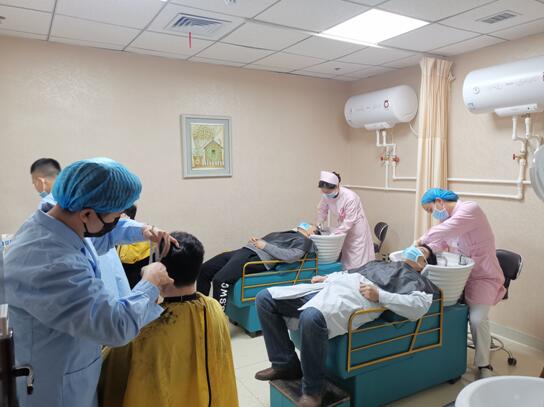 2月17日下午,“剪屋”理发店联合陕西邮电职业技术学院对面的“艺剪”理发店,共3位理发师来我院,在外科楼皮肤科生发中心为我院医务工作者进行义务理发,皮肤科陈小艳主任积极组织科室医务人员为前来剪发的员工义务洗发。3位理发师自2月17日下午1点开始加班加点,每天理发近50人,至2月21日已为我院170多名员工理发。大家剪完头发,个个神清气爽,精神抖数,以良好的精神风貌继续奋战在抗疫一线。