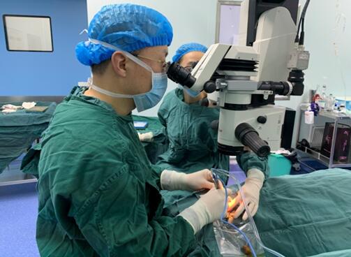 患者刘奶奶,94岁,因右眼渐进性视物模糊6月余入住眼科,既往患有”帕金森病”30年余,入院时右眼视力0.08,左眼视力0.2,晶状体皮质及核混浊,眼底窥不清。因患者年龄大,最主要的是有帕金森病史,静止性震颤,也就是说患者在静止的状态下都会颤抖,这种情况对于精细化的白内障手术来说,难度很大。于彬科主任经过全面评估及慎重分析讨论后,反复和患者及家属进行沟通,谈论手术的相关事宜,并制定了详细缜密的手术方案。于2020年3月9日在表面麻醉下行白内障超声乳化抽吸术+人工晶体植入术,手术过程顺利,在医护人员的陪同下老人安全返回病区。