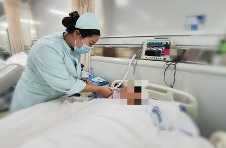 责任护士吴敏在巡视病区时,患者主诉输液肢体疼痛,责任护士吴敏即刻查看输液部位有无肿胀,最终确认系氯化钾药物刺激所致,微笑着解释道:“叔,没事,这是药物刺激引起的,我现在就给您处置。”遂后她麻利的用温毛巾敷于疼痛部位,从而减轻药物刺激引起的疼痛。当天中午,家人送来了午饭,但是由于患者桡动脉鞘管未拔,不能自行进食,责任护士一边洗手一边安慰道:“叔,没事,我帮你!”。寥寥数语,一下子拉近了与患者的距离,患者说,这是他第一次让别人喂饭吃,这顿饭,吃的舒心,吃的暖心,仿佛让他忘记了自己是个需要被照顾的病人。护士吴敏微笑着说:“这些都是我们应该做的,我们是护士也是你的家人。”