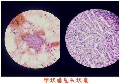近日,有门诊病人一例,无明显临床症状,体检时甲状腺彩超提示:甲状腺单发结节。经血液内分泌科王芳主任在B超引导下行细针穿刺取得细胞学标本。将我科诊断为"甲状腺右叶结节穿刺涂片"恶性肿瘤,甲状腺乳头状癌。半月后并行手术治疗。手术标本病理诊断"甲状腺右叶"甲状腺乳头状癌。因此,细针穿刺不仅创伤小,而且可以早期、快速的为临床医师和肿瘤科医师提供有价值的信息,帮助医师正确地评估患者预后,制定最佳的治疗方案。