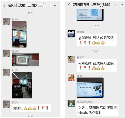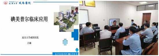 2020年4月24日,延安大学咸阳医院刘连锋教授、吕琳主管技师携手四川大学华西医院李真林教授、赵俐红护士长共同举办了碘美普尔400全身应用研讨会(网络会),邀请全省市业界同仁共同学习观看。下午3点,网络会议开始,延安大学咸阳医院CT/MRI室全组医生及部分技师进行听课学习,刘连锋教授对大会进行了会议致辞,并邀请四川大学华西医院李真林教授对于《高浓度对比剂全身应用》进行了阐述与讲解;赵俐红护士长对《高浓度对比剂护理应用安全》进行了举例及说明,讲授内容客观详细,引人入胜,使得与会人员对于高浓度对比剂的应用及护理认识提升了高度。