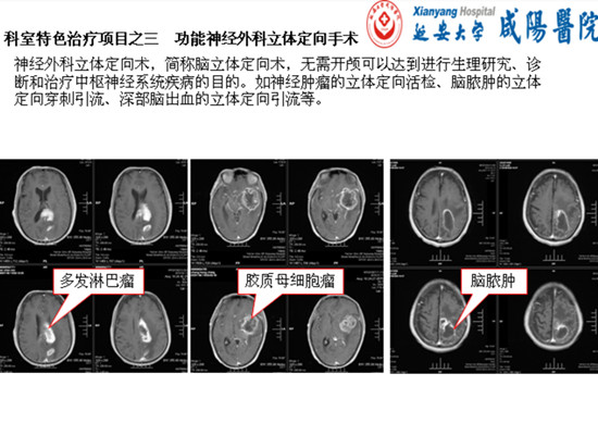 我院神经外科一病区为市级重点专科,多次成功完成颅内高难度手术,在颅内肿瘤、脊髓肿瘤、颅底肿瘤和颅脑创伤、脑出血手术等居全市领先水平。长期开展脑膜瘤、胶质瘤、脑出血(开颅、微创)、大面积脑梗死、重型及特重型颅脑损伤、慢性硬膜下血肿(硬通道、软通道)、颅骨缺损电脑三维塑型修补、立体定向脑内病变活检等神经外科常见病的外科手术,具备显微神经外科、功能神经外科的设备与技术。