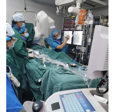 支架在冠脉血管的精确定位又再一次考验了介入团队的综合技术能力,虽然对造影剂过敏发生率只有万分之三,但一旦发作,严重者可导致患者喉头水肿、休克等严重并发症,可导致死亡。该先进术式为高过敏体质患者提供了更先进及精准的治疗策略和选择,让冠脉支架植入术对造影剂严重过敏者不再说“NO”。