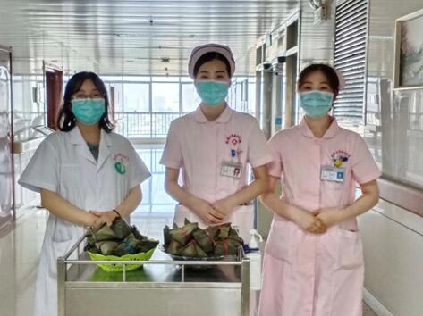 2020年6月24日晨,全体医护早早的为患者们准备好了香甜的粽子,并由护士长、主管医生和责任护士亲手送至每个患者手中,他们说:“在这个传统佳节的日子里,为大家送上甜香软糯的棕子,祝福大家端午安康”。一个个热气腾腾的粽子送到患者手中,一声声暖心的节日祝福回响在病房中。