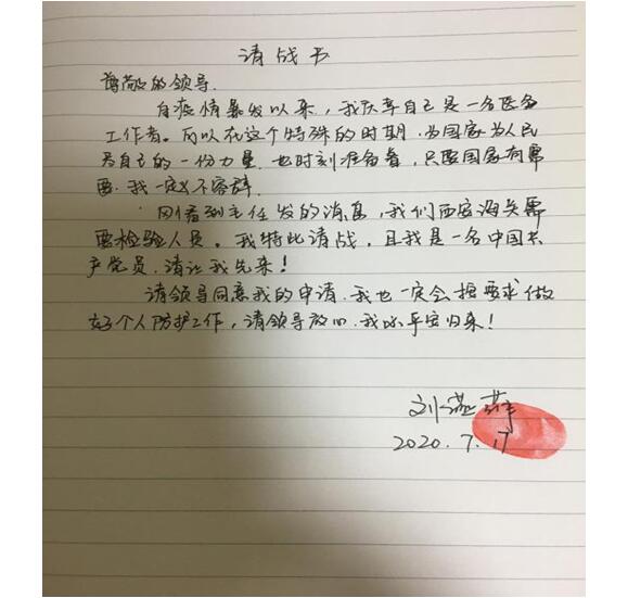 随着境外新冠病人及各航空公司国际航线复航或航班频次增加,西安海关采样等工作任务剧增,为守好入境人员管控关口,按照陕西省应对新型冠状病毒感染肺炎疫情工作领导小组办公室的统一安排,我院选派一名实验室检测人员赴西安海关展开支援检测工作。作为党员的刘燕菲同志,在科室微信群里看到文件内容第一时间给孙主任打电话,请求派自己去支援西安海关,她一再强调,作为一名党员,这正是需要她站出来的时刻,希望主任批准。