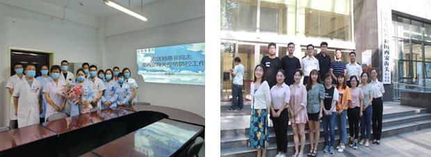 7月18日,在检验科孙继红主任的带领下,检验科全体人员为刘燕菲同志举行了欢送会,为其送行。孙继红主任指出,作为支援西安海关的医疗单位,我们要树立政治意识、大局意识和责任意识,把支援工作作为一项重要的政治任务来抓。希望刘燕菲同志不辜负全院的重托,积极发挥自身优势,把我院的优良传统传承下去,以过硬的业务技术出色完成此次支援任务。展现出了新时代检验人的勇于担当,相信刘燕菲同志能够在抗击疫情的考验中锤炼和提升自我,出色完成任务,同时一定要做好自身防护,期待早日平安归家!刘燕菲同志表示,一定顾全大局,艰苦奋斗、脚踏实地、兢兢业业地做好检测工作,不辱使命,圆满完成支援工作,用实际行动诠释了一名共产党员的初心与使命。