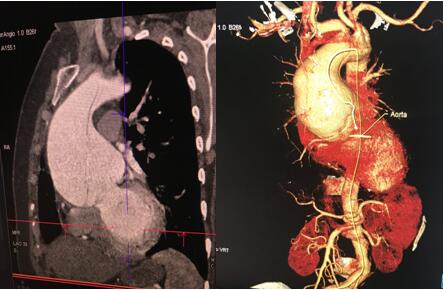 术前CTA影像:升主动脉扩张明显,最大直径10cm