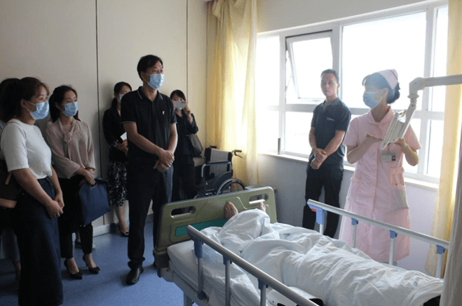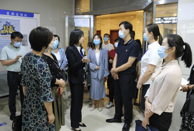 随后各位领导在宣传部赵莉部长的陪同下参观了脑血管病院门诊大厅和外科病院门诊大厅,体验了我院住院、检查、治疗、出院结算均在楼内一站式完成的人性化布局和门诊一站式结算服务,在神经外科一病区观摩了集影视观看、健康宣教、费用查询、移动支付、反馈意见等服务为一体的床旁智能服务系统,交流学习了我院医保收费、药品、医用耗材价格维护、公示及患者住院(门诊)一日清单的制度流程。