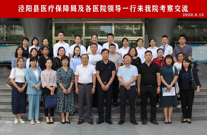 2020年9月15日,泾阳县医疗保障局副局长杨宏勋及泾阳县各级医院领导一行20人莅临我院考察交流。延安大学咸阳医院董事长李卫军、院长助理沙宁、副总会计师高霁及相关职能部门、临床科室负责人陪同接待。