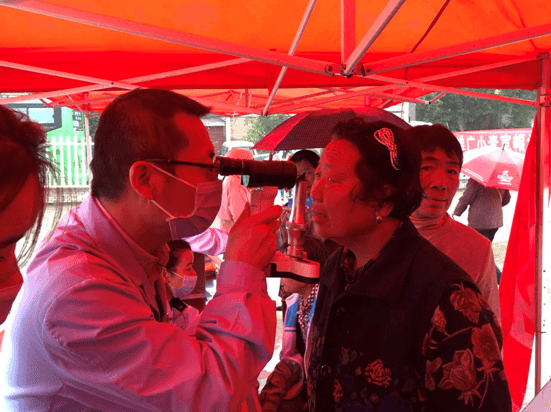 眼科冯宝平副主任医师为病人检查眼底