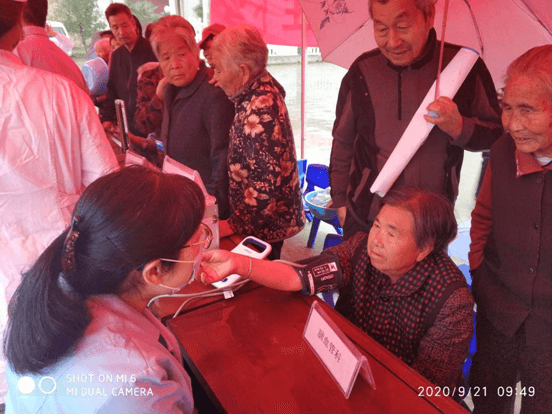 秋雨带来了丰收的喜悦,雨淅淅沥沥地下着,义诊现场一早就聚集着慕名前来的群众。为了做好此次义诊活动,我院提前组织了由呼吸内科贾建厚主任医师,眼科冯宝平副主任医师、护士王彩华,神经内科徐巧绒副主任医师,骨科杨锁平医生,心血管内科冯韩章医生,放疗科张洁医生组成的服务团队,带有裂隙灯检查仪、肺功能仪等便携设备,以饱满的热情投入此次义诊活动。现场井然有序,义诊现场气氛热烈。