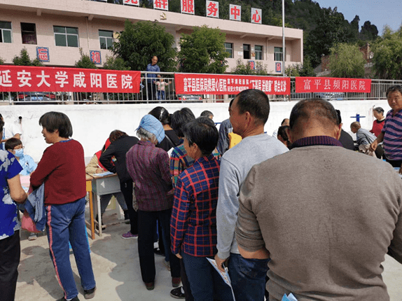 为深入开展2020年“服务百姓健康行动”大型义诊周活动,切实提高人民群众的健康水平,2020年9月24日,富平县医保局携富平频阳医院与延安大学咸阳医院联合开展送爱心下基层义诊活动。此次活动,延安大学咸阳医院按照咸阳市卫生健康委员会的有关文件精神要求,在院领导的精心部署和周密安排下,延安大学咸阳医院宣传部赵莉部长、张笑研科长组织了一批临床、医技科室医德高、业务精、能吃苦耐劳的医疗服务队到富平县岳白村开展大型义诊活动。