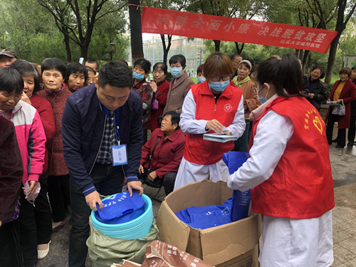 为深入贯彻习近平总书记精准扶贫、精准脱贫战略思想,和在解决“两不愁三保障”突出问题座谈会、在决战决胜脱贫攻坚座谈会以及来陕考察等重要讲话和重要指示精神,认真落实中央、我省、我市关于脱贫攻坚的决策部署,结合我院工作实际,发挥党建引领作用,延安大学咸阳医院联合空港新城北杜卫生院开展以“决胜全面小康 决战脱贫攻坚”为主题的义诊活动。