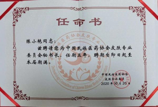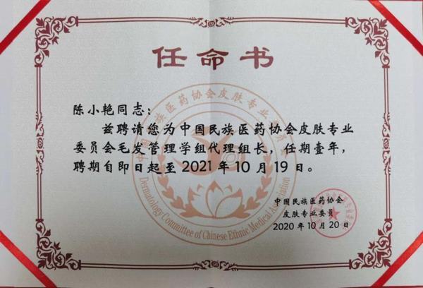 中国民族医药协会是经民政部备案的一级协会组织,成立于2007年。19日协会常务副会长兼秘书长李文亮亲自带队到石家庄参与中国民族医药协会皮肤专业委员会成立预备会暨第一届理事会。经选举我院皮肤科主任陈小艳当选为“中国民族医药协会皮肤专业委员会秘书长”兼“毛发管理学组组长”。