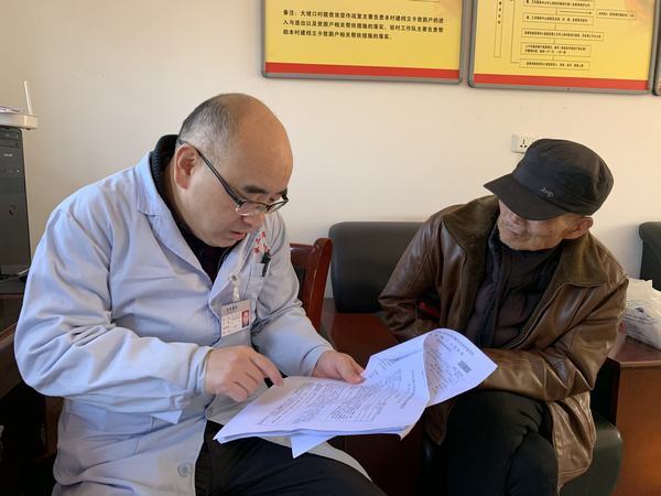 心血管内科二病区左梅主任认真为老乡查体