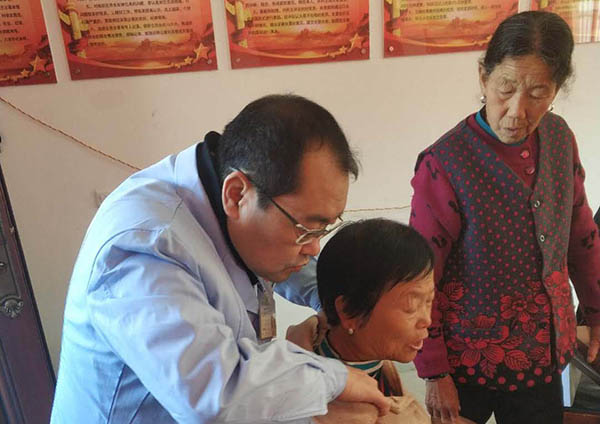 疼痛科王永主任为老乡按摩颈椎
