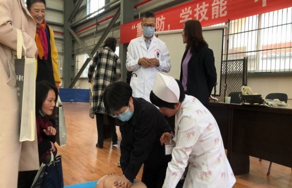疑问解答及热心居民现场学习心肺复苏