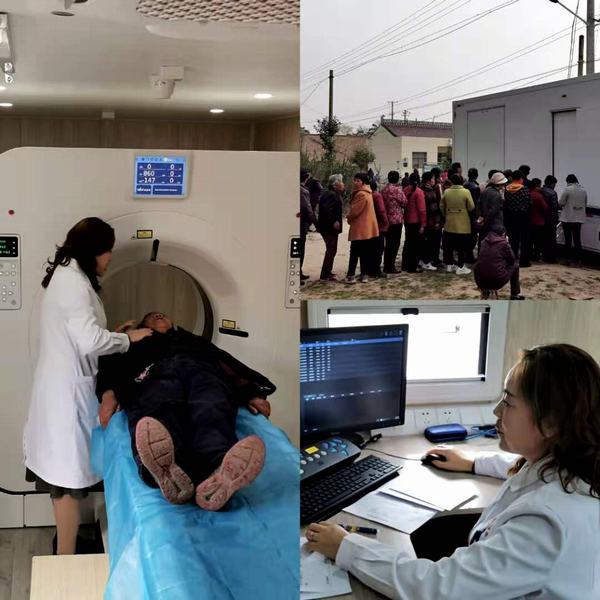 为了做好义诊活动,我院提前组织了由脑血管、心血管、眼科、呼吸内科、疼痛科、生殖医学科等科室专家及骨干医生组成的医疗团队,带足各类便携医疗设备,全方面做好准备,以饱满的热情投入此次义诊活动。这次义诊还特地准备了一台128排的车载CT。该设备采用方钢骨架、承重性好、安全性高、半挂车距离地面仅1米,方便患者上下检查。超灵敏,快速一体化探测器技术、真正实现了低剂量扫描要求,配合NDI微剂量迭代技术,imA智能毫安调控技术、使各种场合下、各部位低剂量扫描得以实现,特别是肺部低剂量扫描,能够清晰显示早期的磨玻璃病变,能够清晰地显示肺间质的变化。本次义诊为139名群众现场进行了CT检查。