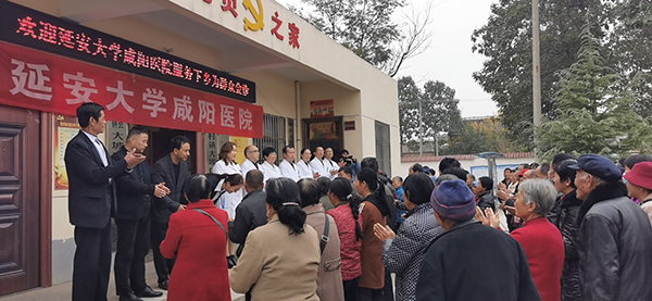 11月12日,在延安大学咸阳医院宣传部部长赵莉和区域科长梁卫华的精心筹划下,由保障部部长张宗民亲自带队,组建了一支多学科专家团队,来到乾县大坡口村开展大型义诊活动,为当地群众进行疾病诊查和健康教育。精准扶贫包抓单位县信访局副局长黄向普、乾县梁村镇政府副书记孙彦峰、大坡口村支部书记张帅现场亲自指导。