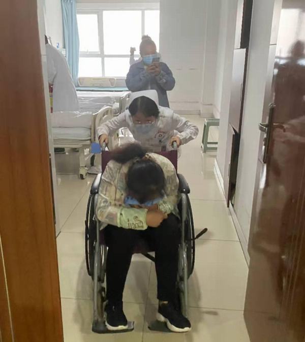 演练场景模拟设置:16床患者家属呼叫护士,充电器着火了,值班护士何丹迅速到达病房,立即关闭病室氧气开关,同时呼叫其他人员转移患者。