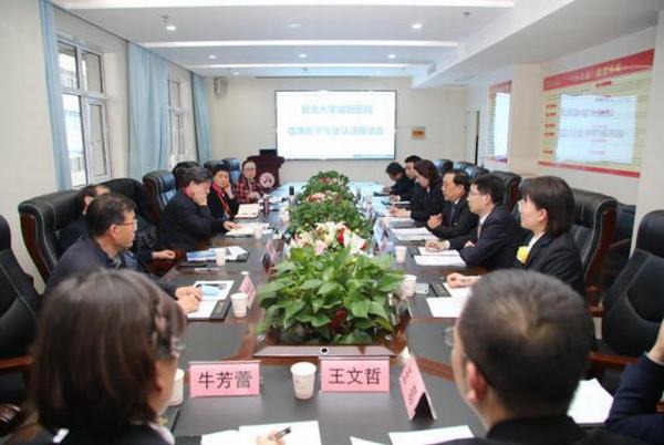 2020年11月23-26日,教育部临床医学专业认证现场考察组对延安大学临床医学专业认证开展检查工作。11月24日,专家组组长、原首都医科大学校长吕兆丰教授,同济大学医学院、新生院济人学堂执行院长徐国彤教授,北京大学医学部病原生物学系副主任彭宜红教授,同济大学附属同济医院教育处副处长黄蕾教授就我院临床医学专业认证进行了检查。延安大学副校长、医学院党委书记武忠远同志陪同专家组出席了座谈会,我院董事长李卫军同志、科研教学管理中心主任韩晓芳同志、延安大学第三临床医学院副院长王丙聚同志、认证办主任陈青同志、科教部副部长王绍辉同志及部分教学管理人员、教学骨干参加认证检查工作。