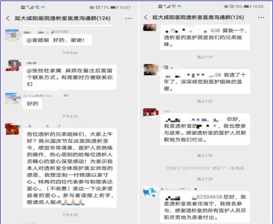 在科室服务品牌提升过程中,石娟护士长要求科室人员以“亲情化服务理念”落实服务品牌建设工作:一是科室的发展离不开患者的认可,没有患者就没有我们的科室;二是服务无小事,事事须关心;三是只有真正的做到感同身受,才能做到待患者如亲人、友人。在接下来的工作当中,科室医护人员紧紧遵循科室服务宗旨,我们时刻把满足病人的需求放在首位,真正做到“急病人所急,想病人所想”,在患者透析过程中,为患者打水、送饭、嘘寒问暖;对透析患者的管路定期随访,指导管路护理、饮食指导等等。一句亲切的问候、一个温暖的眼神、一句暖心的鼓励,让患者感觉来到透析室就像在家里一样舒心与安心。经过我们无微不至细心的照护,收获了诸多患者的肯定。