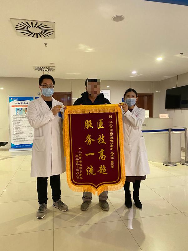 2020年12月7日11:58分左右,紧张而繁忙的早班即将结束,此时门外匆匆赶来一位家属:“大夫您好!我们有两位老人不方便照顾,正在一楼做检查,估计10-20分钟后可以上来,能否耽误一会你们的下班时间给做个动态心电图”,正好准备下班的王芝荣主任和蔡蛟龙医生听到,主动上前回答:“没事,可以,您不急,我们在这等”。大约12点20分患者来到科室,王主任和蔡医生认真接待两位老人,细心的操作,耐心的解释注意事项,帮助患者整理好衣物等,两位老人返回病房。次日,蔡医生亲自为患者取下动态心电图、并将报告结果送至病房,细微之处见真情;两位老人再三感谢,他们说道“这两位医生的等待,让我们觉得是在真真正正为我们患者解决问题。