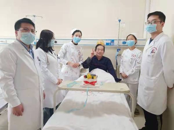 12月17日,对于我们来说是一个普通的日子,对于赵大叔来说,是一个特殊的日子,生日对于每个人来说都有着非同寻常的意义,它代表着生命与希望。我们又一次的为患者筹办生日会,戴生日帽、唱生日歌、送生日祝福、这一切在我们看来是多么的平常,但对于该患者来说是一个莫大的安慰!老人提到:每次生日都是老两口简单吃顿饭,儿女工作繁忙,多少年都没有隆重的庆祝过生日了!在悠扬的生日歌中、在一声声的祝福语里、在心一科医护人员的真情陪伴下,赵大叔度过了一个简单、温馨而又特殊的生日。“谢谢,谢谢……” 一句句朴实而重复的话语,却表达出来自患者及其家属最为真诚的感谢!