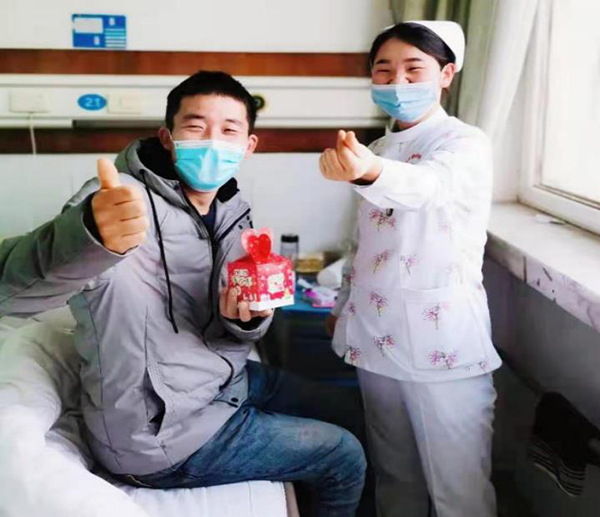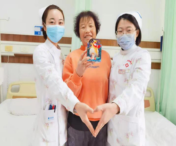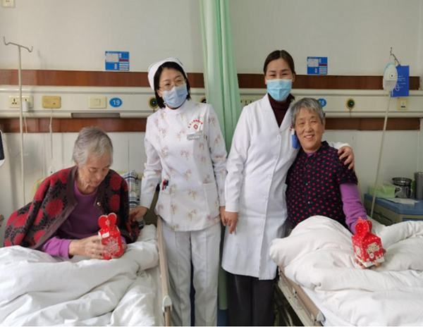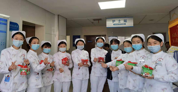 看到病人脸上洋溢的微笑,相信一切的努力都是值得的,小小的“平安果”凝刻着血液内分泌科每一位医护人员深深的祝福。“感谢你们的信赖,您的健康之托,血液人必全力以赴。”在为住院患者都送完温暖后,王芳主任和杜梅梅护士长也为科室的员工送了“平安果”和温馨的祝福。