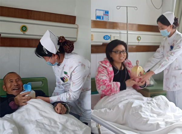 12月24日, 为庆祝即将到来的平安夜和圣诞节,延安大学咸阳医院全科医学科为了能让离家在外住院的患者及家属感受到浓浓的节日氛围,更为了减轻患者的病痛,缓解心理上的折磨。在科主任和护士长带领下来到病房,为每一位住院患者送上了精心准备的平安果,为他们送去贴心关爱,传递“平安”祝福。