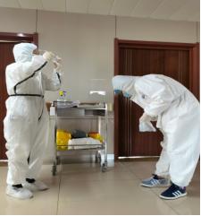 演练以“普通病房发现一名疑似新冠肺炎患者”展开进行,紧密围绕早发现、早报告、启动应急预案、工作人员二级防护、规范转运、病区患者、家属及医护人员的排查、患者安抚、病区门禁管理、消毒、灭菌、物体表面及环境终末消毒、医疗废物处置、医务人员穿脱防护用具、讨论改进等步骤有序进行,演练流程紧扣我院应对秋冬新冠疫情防护流程,做到环环相扣,严谨缜密。