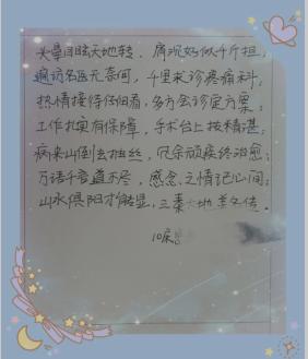 这是一位远自新疆来的患者,用一首打油诗,以表对医护人员的感激之情。在我院疼痛科,他的多年顽疾被治愈了,更是感受到家人般的温暖。