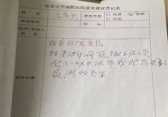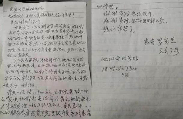 这时,脑血管病院大厅里,一位老大爷,在断网前已经交了药费,在去药房取药途中全院网络中断,药房因电脑没有网查询不到信息,无法发药。老大爷在医生陪同下一起来到收费窗口,因无法取药,要求退费。但收费室也已断网,收费员便与医生和药房进行沟通协商,因就诊卡的钱无法退出,陪同医生出具情况说明,收费室填写手工收据,收费室赵文静主管用自己的钱为老大爷先垫付药费,待系统恢复后补录手续,随后医生便陪着去药房取药。事后老大爷非常感动,当场写了一封热情洋溢的感谢信。