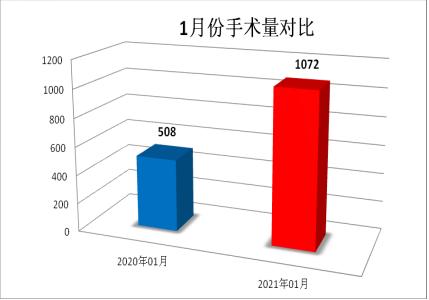 一月的中国天寒地冷,一月的中国疫情肆疟,一月的延安大学咸阳医院逆世上扬,一月的导管室牛气冲天,一串串会说话的数字彰显着铅衣人任劳任怨甘于奉献的孺子牛精神。统计分析:2020年1月份,共完成各类手术508台,已经开了新年的好头,但是在2021年1月份,仅仅31天,心导管室的数据再一次被刷新,1072台手术顺利完成,超出了去年同期2倍多的数量,真可谓牛气冲天。