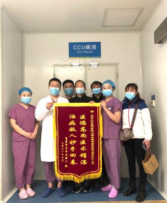 2月25日上午,李新国主任接过贺先生一家送来锦旗,上面用烫金大字写着“医德高尚,医术精湛,治病救人,妙手回春”,这是一面写满责任和信任的锦旗,同时也是承载着患者对CCU全体医护人员的认可与鼓励。