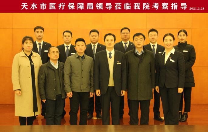 2021年2月28日,天水市副局长新闻发言人唐宇宏、医疗保障局副局长李杰一行4人莅临我院进行考察交流并参加《天水健康云课堂(第三期)》节目播出。延安大学咸阳医院院长张海涛、宣传部副部长赵莉、宣传部科长张道峰及相关职能科室负责人等陪同考察。