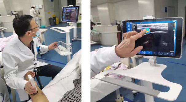 血液透析前提是有良好的血管通路,而血管通路的建立,从最早期盲穿渐过渡至依靠传统B超机行血管定位,提高了穿刺的成功率,有效保护了血管资源。但传统B超机体积庞大,不便于携带,价格昂贵等,随着微电子技术迅速发展,继而掌上B超应运而生。该B超设备仅有平板电脑大小,轻便实用、操作简单、图像清晰、易于携带。查房时仅装在工作服口袋,可随时为病人检查血管条件,为置管或造瘘提供依据。掌上超声可以使医生、护士获取丰富、便捷的诊断信息,提高医生护士工作效率,这从根本上改进了医生、护士对疾病的诊断流程和对病人的关怀方式。