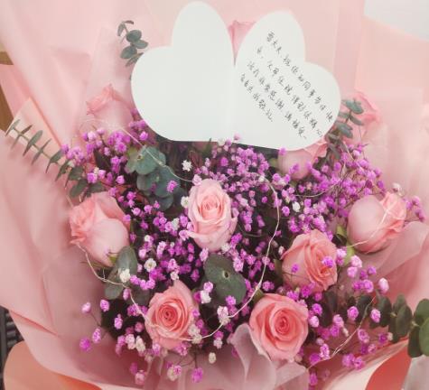 刚交完班的我们,又收到了一个惊喜:鲜花!大家都在猜测是谁这么的浪漫,当打开贺卡看后,都愣住了,原来是位患者家属,并未署名。一束芬芳的鲜花,一句温馨的话语,承载着患者对 “白衣天使”深深的祝福。
