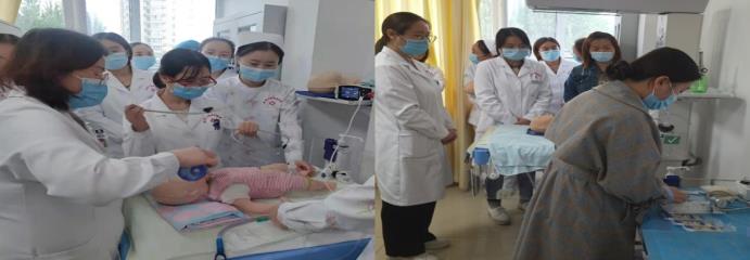 本次培训邀请了西安市儿童医院新生儿科王文静教授,进行授课。王文静教授采用理论联系实践、教学和模拟实操项结合的形式,针对新生儿复苏的新进展、流程、及复苏的重点环节正压人工呼吸、胸外按压、气管插管、药物、脐静脉置管等6个方面的内容分别进行讲授,并为学员进行正压人工呼吸、胸外按压、气管插管等现场操作演示和指导。培训期间、大家热情高涨、积极互动、相互交流。